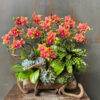 – Mô tả: Lan hồ điệp lớn đỏ kèm phụ liệu decor: Sen đá, cây tổ phụng, củi lũa, cây tường xuân (tuỳ theo mùa).