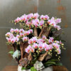 – Mô tả: Lan hồ điệp mini hồng. kèm phụ liệu decor: Sen đá, củi lũa, cây xanh (tuỳ theo mùa).