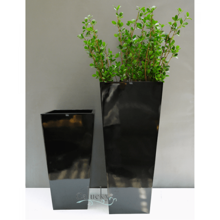 Chất liệu bột đá và sợi Fiber, thiết kế bề mặt trơn, sơn cao cấp màu bóng, đa phần các chậu có kích thước nhỏ, phù hợp trồng các loại hoa giả và trang trí phòng khách đa dạng